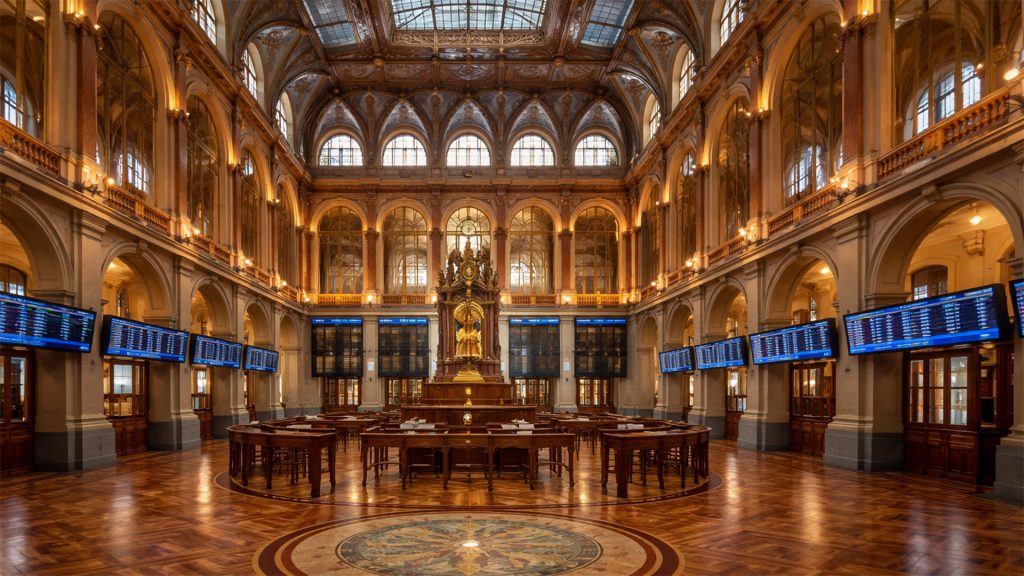 Junto a la Plaza de Cibeles y el Paseo del Prado, en el Paisaje de La Luz, se sitúa este palacio de estilo neoclásico y decoración renacentista en el que se negocia el mercado de la Bolsa de Madrid. Es uno de los emblemas arquitectónicos de la ciudad, diseñado por Enrique María Repullés y Vargas, quién ganó para tal efecto un concurso convocado por la Junta de Obras de la Bolsa de Madrid en 1884, presentando un proyecto que tomaba como modelo el edificio de la Bolsa de Viena.